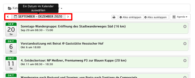 Unser Veranstaltungskalender bietet viele Möglichkeiten. Sie können sich beispielsweise nur bestimmte Wandergruppen oder Streckenlängen anzeigen lassen.